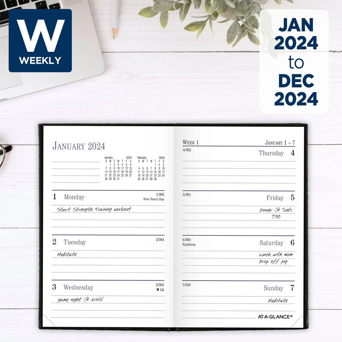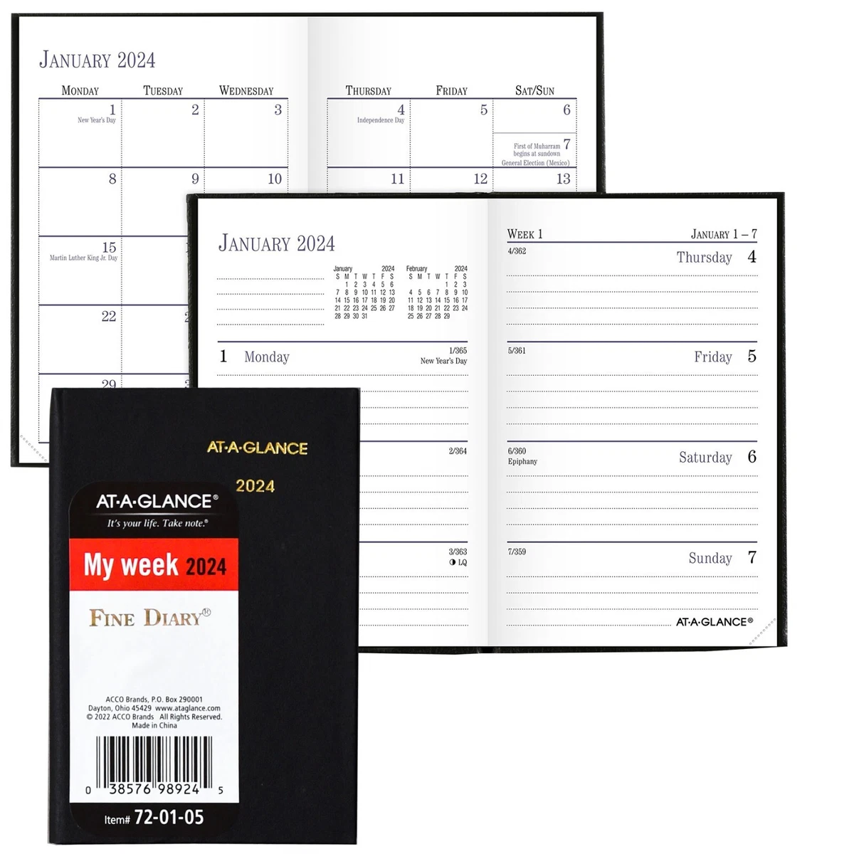 2024 At A Glance 72 01 05 Fine Diary Weekly Monthly Planner, 2 3/4