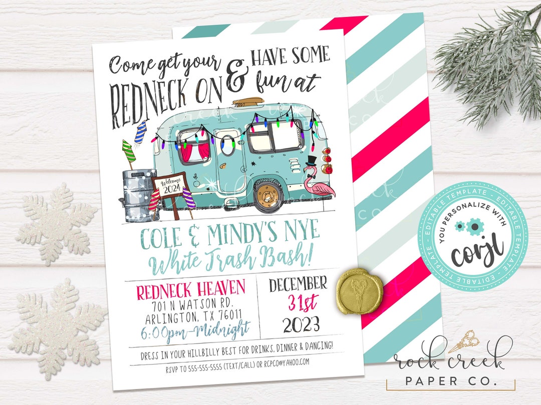 New Year’s Eve White Trash Bash Invitation Redneck Etsy Ireland