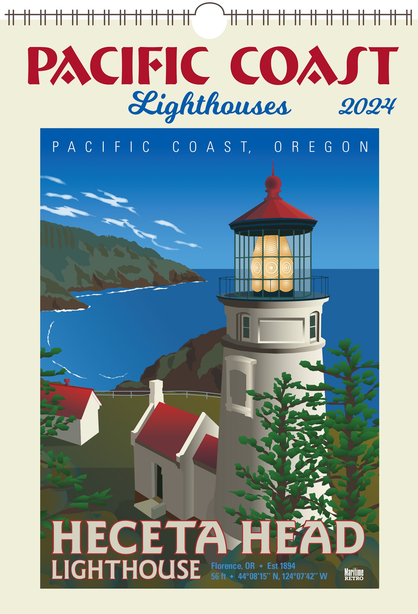 Pacific Coast Lighthouses Oversize Wall Calendar 2024, 13.38” x